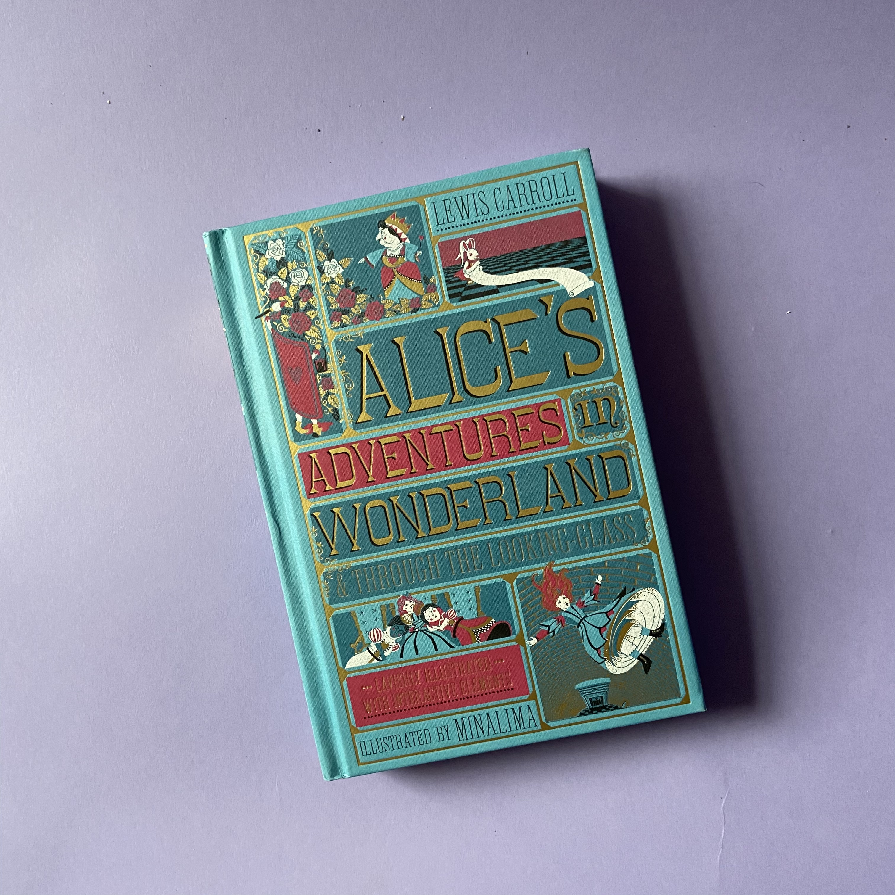 I’ve fallen in love with my new copy — it contains Alice’s Adventures in Wonderland as well as Through the Looking-Glass, “lavishly illustrated with interactive elements” by Minalima (5).